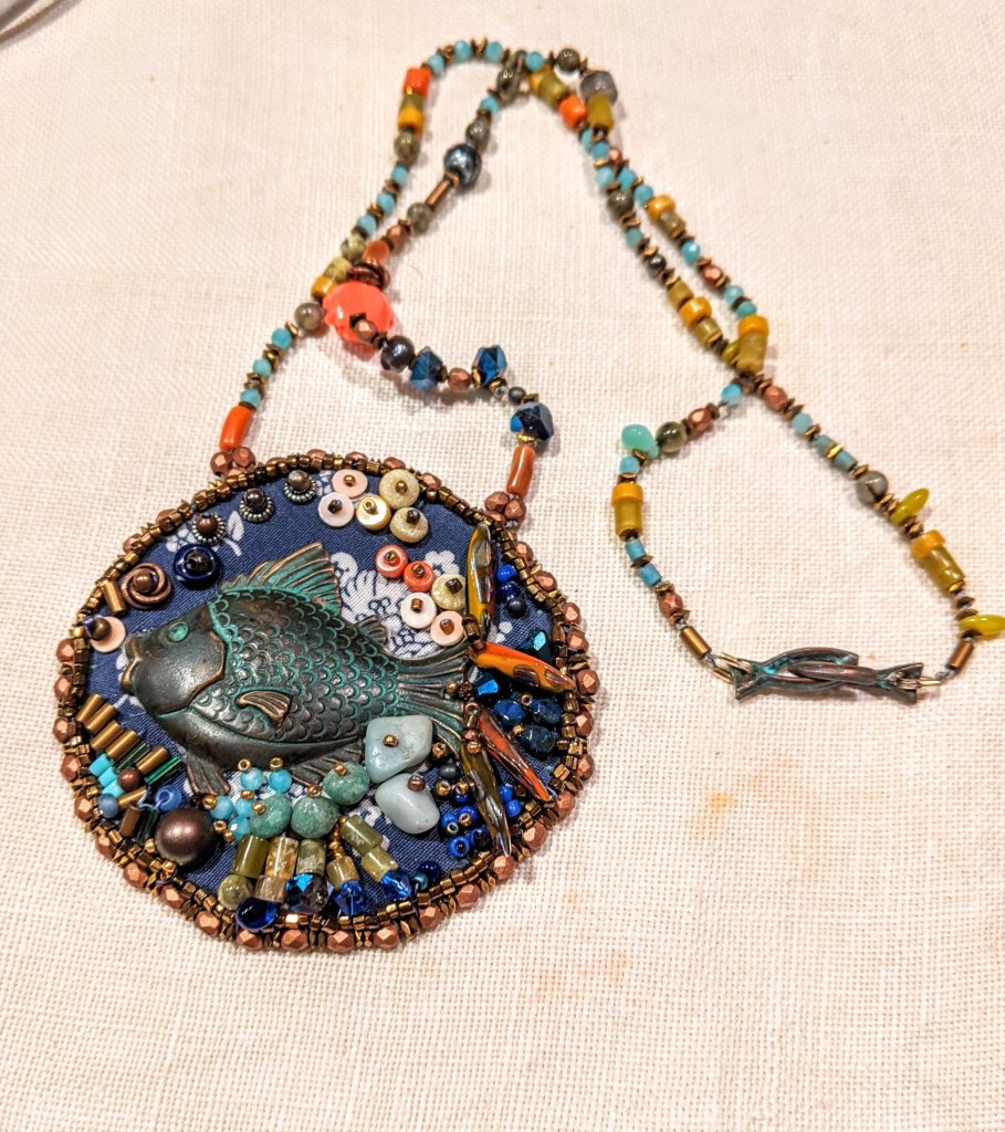 This is a collection of lovely charms, with African blue glass beads. Same color as Amy’s eyes.